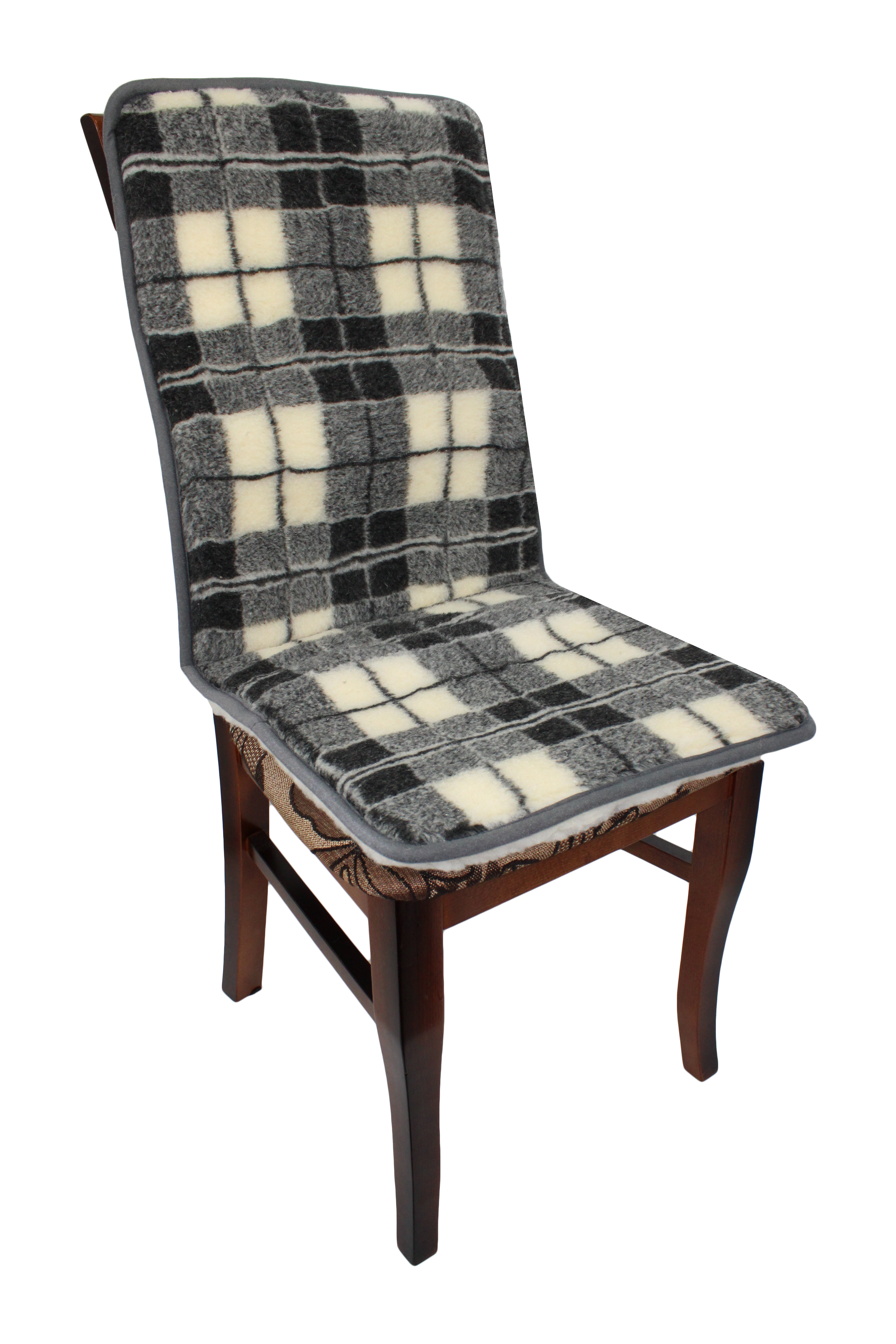 Wełniana nakładka narzuta na krzesło Merynos - popiel krata